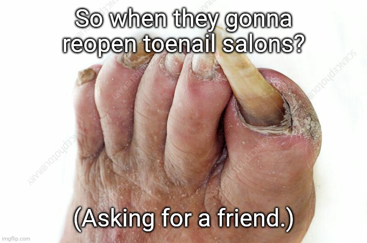 If you find this site serviceableness, please support us by sharing this posts to your preference social media accounts like Facebook, Instagram and so on or you can also Save this blog page with the title Long Toenail Meme by using Ctrl + D for units a laptop with a Windows operating system or Command + D for laptops with an Apple operating system. If you use a smartphone, you can also use the drawer menu of the browser you are using. Whether it's a Windows, Mac, iOS or Android operating system, you will still be able to bookmark this page.